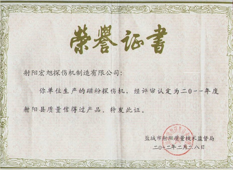 射陽(yáng)宏旭探傷機(jī)制造有限公司-磁粉探傷機(jī)丨磁粉探傷儀丨退磁機(jī) 等產(chǎn)品均通過(guò):ISO9001:2000 認(rèn)證,符合JB/T8290-2011標(biāo)準(zhǔn),產(chǎn)品一律實(shí)行三包,“誠(chéng)信鑄就品質(zhì),創(chuàng)新打造未來(lái)”是我們的經(jīng)營(yíng)理念,熱線電話:0515-82354499。